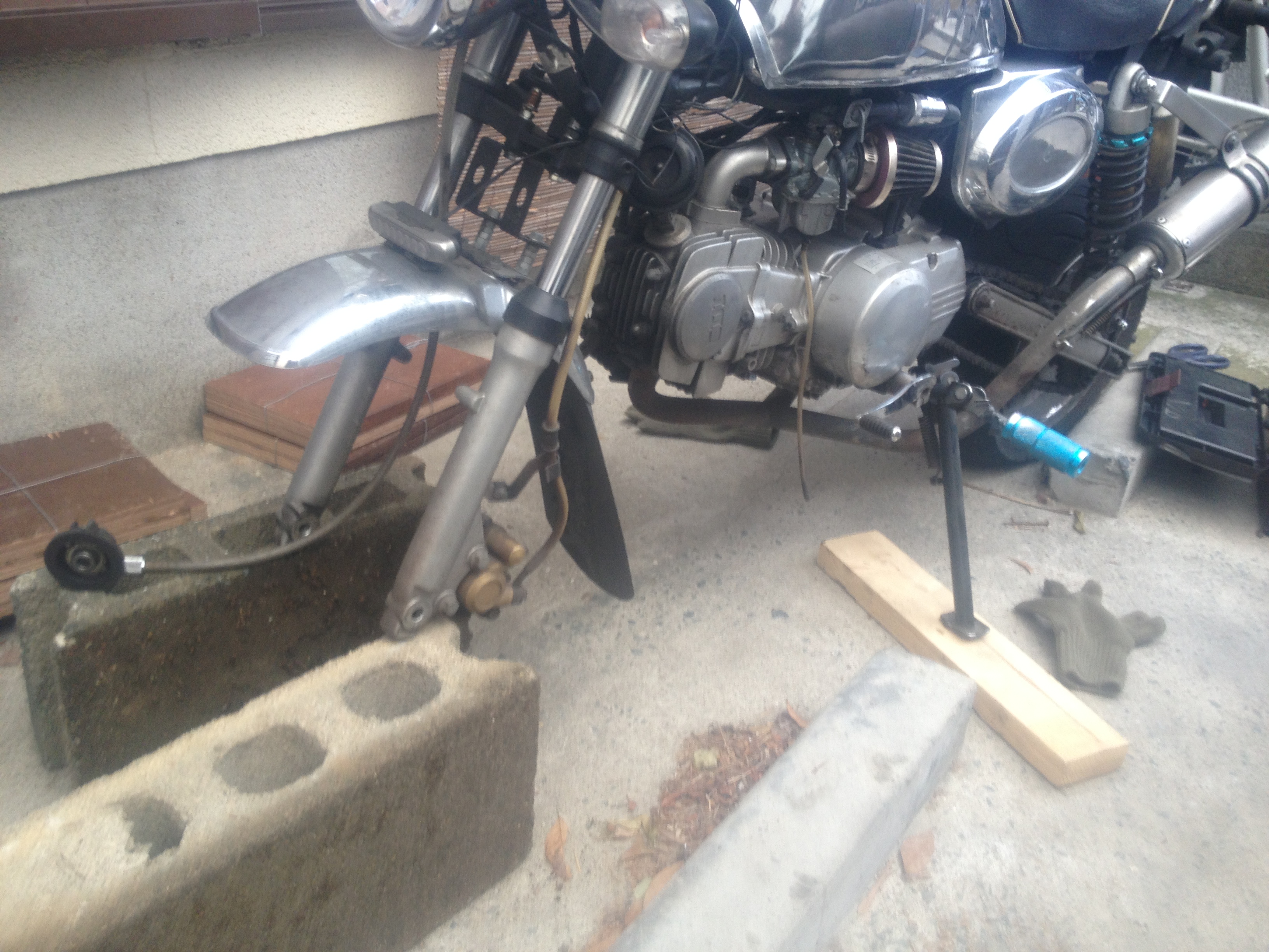 中華モンキー:またしてもクラッチワイヤーが切れた。