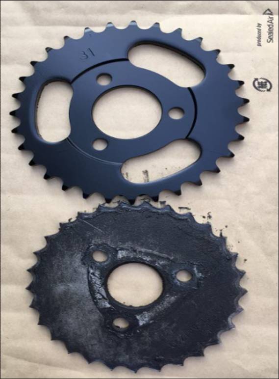 今日届いて、早速交換しようと外したスプロケットと比較
